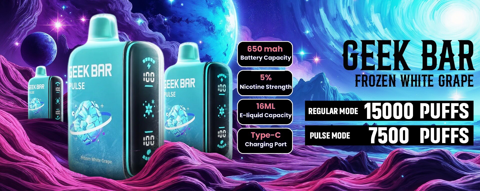 Frozen White Grape is available in the Geek Bar Pulse 15000 model.