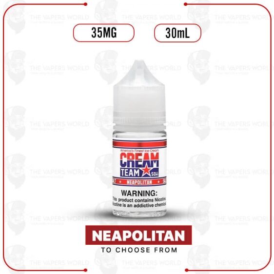Cream Team Salt 30ml E-Juice 35MG gives creamy and smooth dessert flavor. Try Neapolitan today and enjoy sweet clouds with every puff.