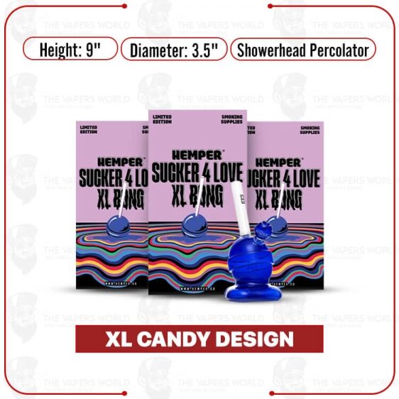 The Hemper 9.2″ Sucker 4 Love XL Bong takes the lollipop look even further. The blue melting candy design feels bold and surreal. The drip effect stretches across the body and creates a true statement piece. The white stick body adds clean contrast. This eye-catching glass fits perfectly in a curated smoke shop display and grabs attention right away.