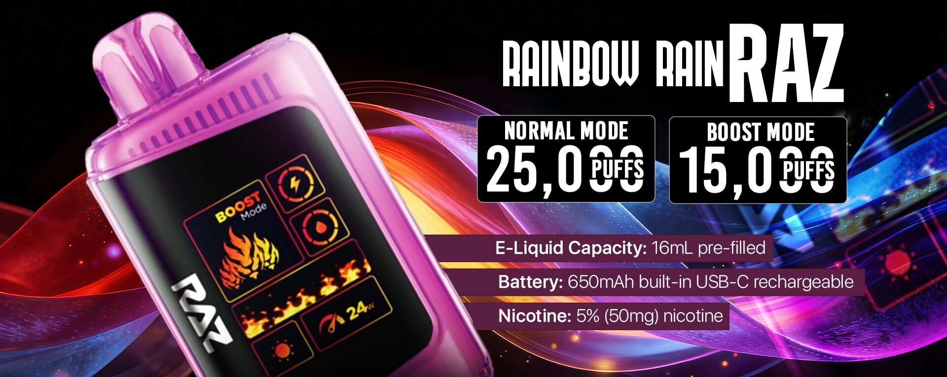 You can buy Rainbow Rain RAZ in the Raz LTX 25K online at The Vapers World.
