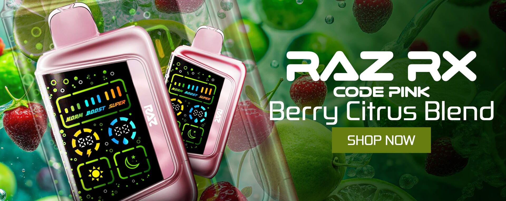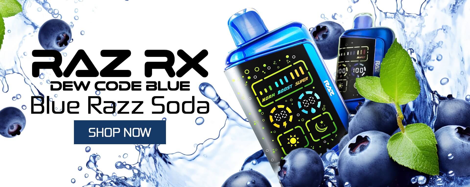 RAZ Dew Edition flavors are a lineup of soda-inspired vape flavors with a sweet, tangy, and lightly cool finish. These are also called RAZ Code Flavors, where each flavor is named by color instead of a standard name. The lineup includes Code Blue, Code Green, Code Pink, Code Red, and Code White, all available in the RAZ RX 50K Dew Edition. Each one leans more toward a fizzy drink-style feel instead of a basic fruit profile.